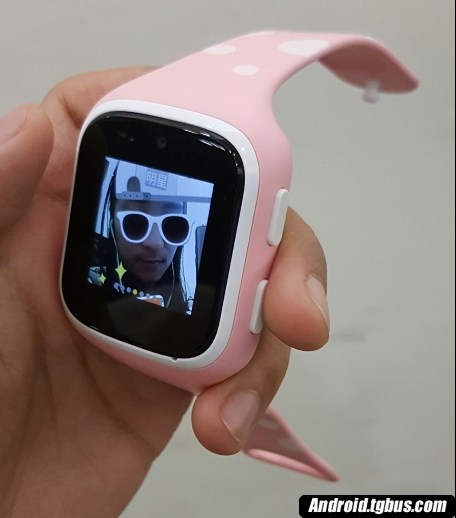 该摄像头位于手表正上方,专用于自拍,因此手表加入了类似于faceu的特效拍照,满足孩子的自拍乐趣。