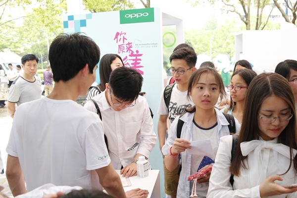 今天,OPPO将摄影棚搬进了上海交大,以自拍美得好自然著称的“全新闪充自拍专家”OPPO R9,携手上海交大,寻找每一个平凡的学生和路人,用OPPO R9拍照手机在现场搭建的各种有趣的背景墙以及临时搭建的专业影棚中,为他们化妆并且拍摄大片,找到更美的自己。搭载PI原画引擎的OPPO R9凭借臻美摄像头和极致美颜4.0,为交大学生带来自信和微笑,更为5月8日母亲节献礼。