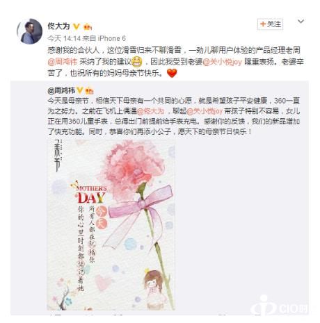 据了解,佟大为已经成为360儿童手表的品牌合伙人,昨日在微博上和360董事长周鸿祎进行了互动,俨然成为了一家人。在5月10日,佟大为也将来到发布会现场一起发布360自家手表,期待佟大为与360儿童手表的新品到来。