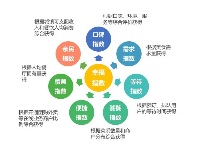 《2016中国吃货幸福指数大数据报告》由美团大众点评数据研究院选取2015年经济总量排名靠前的100个城市作为研究对象,根据口碑指数、需求指数、等待指数、饕餮指数、便捷指数、覆盖指数、亲民指数七大细分指标进行加权获得。