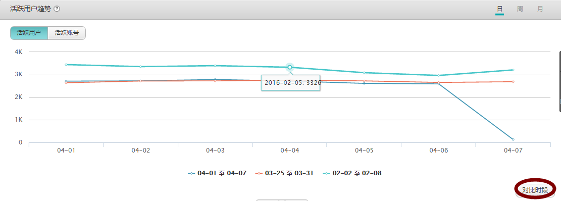 按时段对比查看,可以了解用户激活应用时段,衡量用户使用应用习惯。