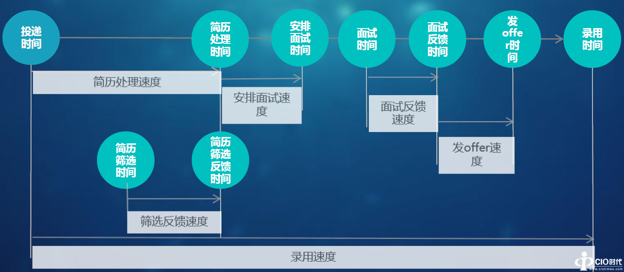 每个应聘者从投递职位开始,随着招聘过程的推进,关键节点的时间就会记录在系统中。这种“过程数据”在很多信息化系统很难记录并分析,但专业的OCEAN可以提取这些内容。