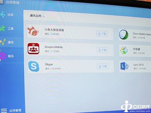 为了满足行业用户的多元化应用需求,CVTOUCH会议平板设定了应用商城,内涵多种类型的应用,分为效率、工具、通讯、娱乐四大类,用户可以根据实际应用需求下载,方便快捷。