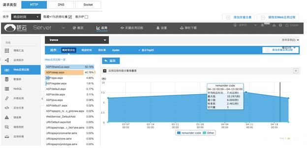 当一次HTTP请求过程中,请求所消耗的时间可能是在不同的步骤发生的,即耗时过长可能发生在建连时间或服务器消耗上。那么如何分解时间才能迅速知道一次网络请求的时间都消耗在什么地方,APP出现的性能问题到底是移动端还是服务器端造成的呢?在这方面,听云全栈溯源可以直接将一次网络请求耗时细化到服务端所消耗的时间,迅速帮助运维人员进行性能排障。