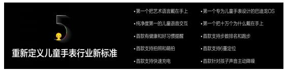 据悉,除了语音智能问答外,巴迪龙儿童手表5s/5还拥有六重强力定位、降噪麦克风、支持3G移动数据等。其中,旗舰版5s还配置了200万像素的美国OV摄像头,加入了一键美白和萌拍功能,2C快速充电技术也是业内首创,这些功能其他品牌的儿童智能手表都还没有。