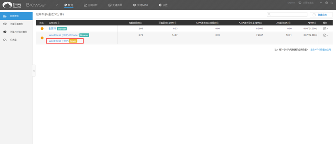 l 在听云Browser应用列表中采用自动嵌码Server探针的,可以直接查看听云Server应用的情报汇总