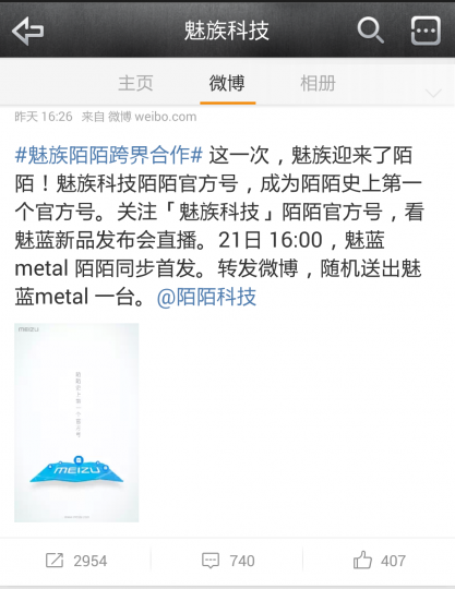 “陌陌史上第一个官方号”,这不是魅族最终想要传达给网友和陌陌用户的信息。陌陌和魅族的牵手约会也才刚刚揭开面纱。在这之后,魅族借助陌陌做线上发布会。
