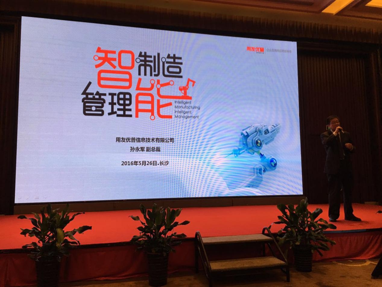 2016年5月26日,“智能制造 智能管理—用友U8+互联网+产业联盟峰会”在长沙盛大召开,本次大会吸引了300多家企业及产业链伙伴参加,会议不仅邀请到湖南省经信委副主任李球先生和在制造行业耕耘十几年的用友优普副总裁孙永军博士,更有在智能制造智能管理方面无畏前行的华菱线缆股份有限公司、菲利华石英玻璃股份有限公司的实践分享,本次峰会用理论和实践相结合让与会嘉宾真正体验到了U8+完整的智能制造解决方案。
