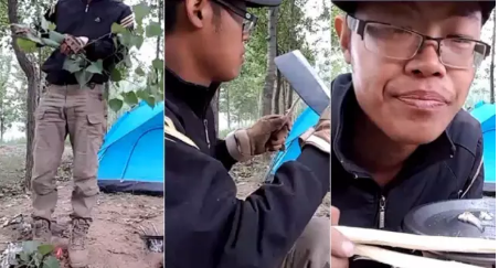 “食物链顶端”的贝爷出身很传奇,SAS特种部队、职业登山家等等,而 “小小鱼儿”纯粹是个奔走在城市间的“荒野求生”新手。直播所在地选在太行山脉一条山脊上,空气新鲜、环境优美,还频繁有山鸡、松鼠、野猪出没,但这位尚不会捕食的“菜鸟”却死活抓不到半只活物,飞禽走搜的鸣叫似乎在嘲笑这个菜鸟的无能。但痴迷户外探险的“小小鱼儿”并没有生存上的担忧,他坦然的说,“这个地方是无人区,环境没有遭到任何破坏,可以安心的在小溪边取水,并挖野菜充饥”。