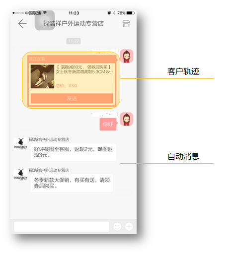 对电商而言,在线客服人员提供售后服务外,更多时候承担的是销售的角色,为客户提供售前咨询服务,这是和传统商业的一个很大不同。因此,在线客服系统应当从销售的角度,具备部分营销功能。