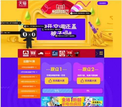 话题PK微博弹幕更换首页 天猫618粉丝狂欢节的这个开端有点酷
