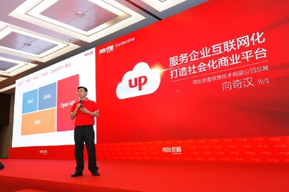 本次发布会最重要的环节是用友优普社会化商业平台的精彩亮相,用友优普总裁向奇汉在发布会现场进行了用友优普社会化商业平台的全面介绍与演示。向奇汉先生认为,用友优普社会化商业平台,在企业管理、交易和运营三个层面为企业客户提供一体化的软件、云服务、互联网金融方案。