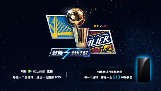 第六场比赛将与6月17日移师克利夫兰进行,在第六场比赛开始魅族每进一个球,在腾讯体育社区的#魅族三分时刻#活动中,魅族都将送出一部刚刚发布的魅蓝3s手机,作为一年一度篮球迷最大的盛典的回馈,球迷可在看球的过程中登陆腾讯体育社区参与活动。