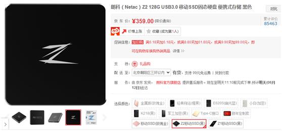 值得关注的是朗科Z2 128G京东报价仅为359元,性价比评价还是相当不错的,在京东618购物节期间还可同享其他优惠,机会难得。