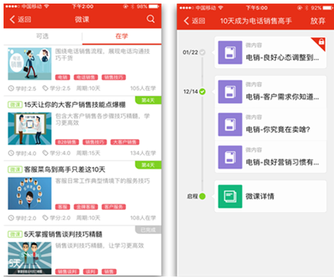 2015年,企业移动学习开始兴起,时代光华第一家推出了时光微课,这种每节5-10分钟的碎片化学习模式,使企业的碎片化知识被体系化呈现,用类似微信公众号的模式按天进行推送,帮助学员养成每天花5-10分钟时间逐步养成学习并复习的好习惯,更好的掌握微课所承载的知识。时光微课在学习过程中还加入了游戏化元素,可以通过抽奖获得积分,积分可以提前解锁后续课程内容,让学员在愉快的心情下学习,彻底告别那些传统、枯燥、无用的长篇大论。做到学着有意思,学了有意义。