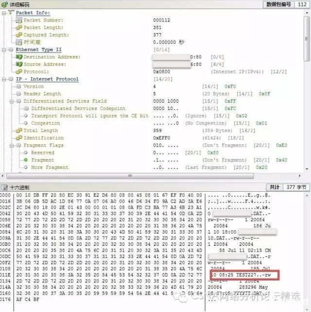 同时,抓包点3上提取数据包进行解码分析,需要采集的文件名称仍为“TEST227.DAT.”,不会发生变化,如下图。