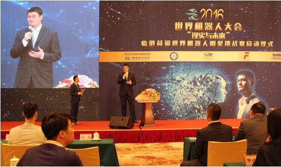 2016年6月19日,“2016世界机器人大赛——临港荷福世界机器人明星挑战赛”启动仪式在北京举行。作为全球首位深度介入人工智能机器人行业的国际巨星,上海荷福控股集团形象代言人姚明出席并出任大赛形象代言人。