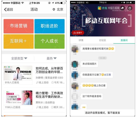 本月20日晚,在2016互联网大会开幕前夕,领英中国总裁沈博阳在赤兔发起了一场《商业的本质》读书分享活动,全程利用语音功能同步分享自己对商业本质和管理艺术的思考,并利用活动直播群实时同步展示PPT内容,流畅、自然地呈现了一场深度的线上知识分享内容。紧接着,21日的互联网大会上,从开闭幕式到分论坛,赤兔利用线上活动直播群继续同步大会现场内容,开启了全新的线上知识分享模式。