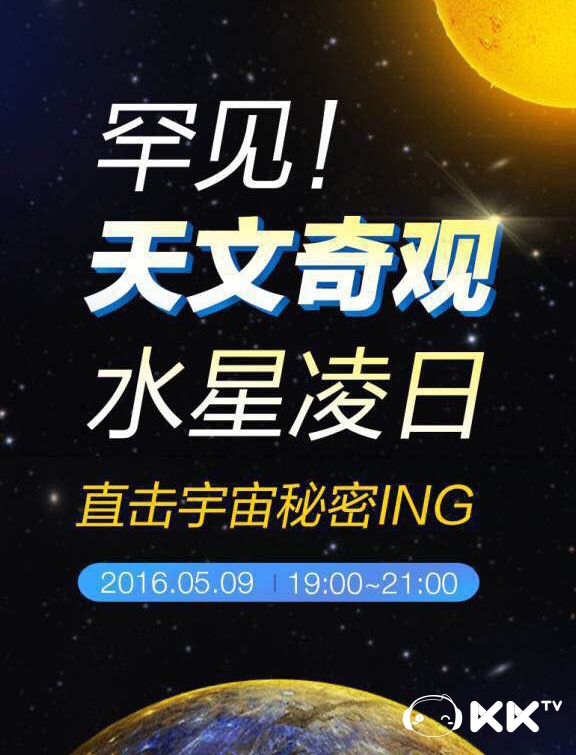 在视频互动直播界,KK一直秉持绿色平台的发展策略,重视多重领域的内容拓展,早在今年5月9日,KK与腾讯云合作的罕见天象水星凌日直播就引起强烈反响,大批天文爱好者对此次直播反馈称很难的能够在网络上观看如此专业的视频直播。