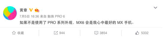 无独有偶,早前魅族的老板黄章也发表微博透露MX6的外观和PRO 6很像,这点让他不满意,但除此以外,MX6是一款让他满意的产品。