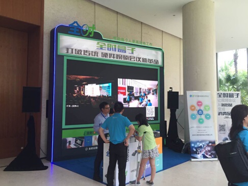 在本次峰会现场,全时在会场外搭建了一块高清大屏,并创新性的通过全时盒子将主会场内外连接起来,场外观众通过大屏就能观看到场内嘉宾的精彩演讲;同时,为了更好地体验全时盒子远程高清视频会议功能,现场来宾可与全时北京、上海、西安、广州等分支机构的工作人员同屏互动,感受清晰无卡顿的高清视频会议效果,以及桌面共享、手机遥控器等特色功能,增强对全时盒子的深入了解。