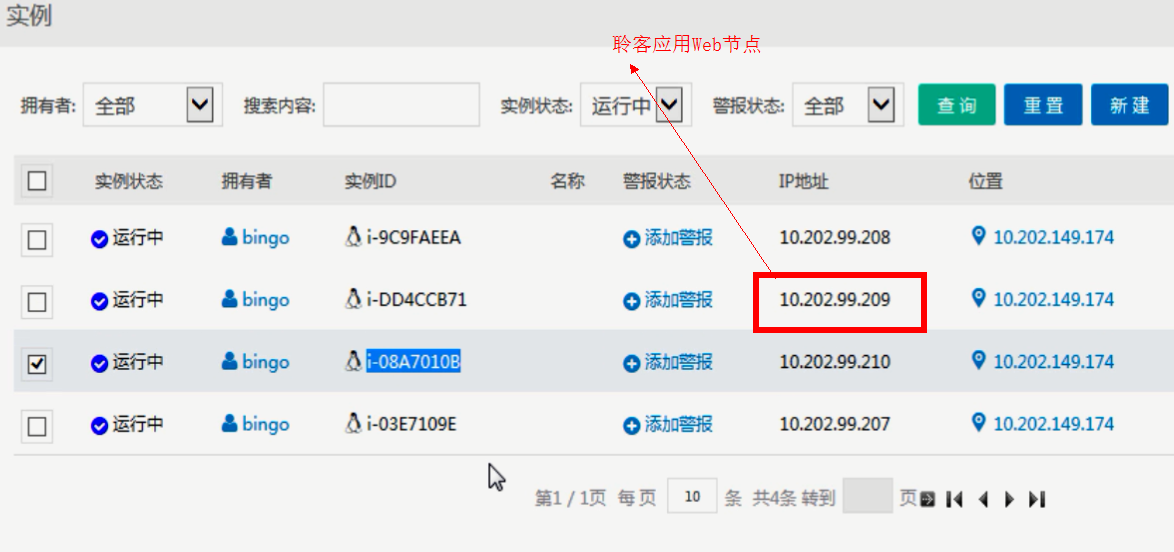 通过品高云平台可以查看到该物理节点上运行的四个实例,其中,上图红框内显示的是应用“品高聆客”的Web节点IP地址