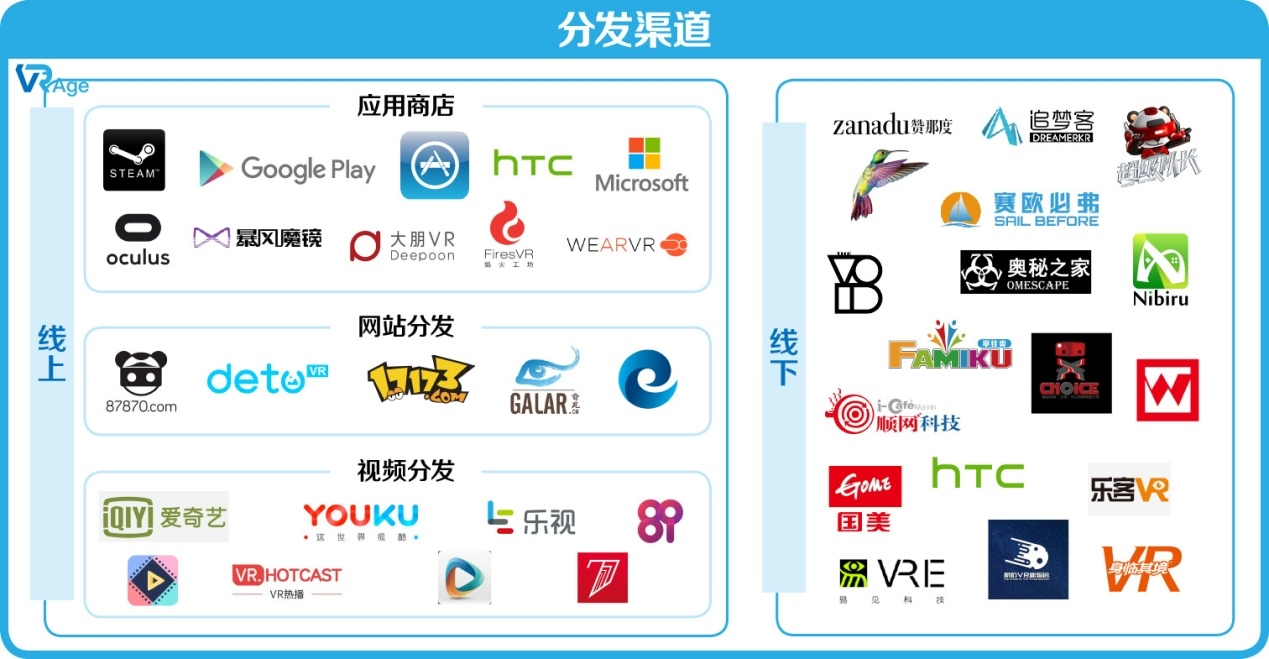 从PC和移动互联网的发展经历看,分发渠道的价值不容忽视。不过,现在VR行业的情况是,VR内容稀缺的情况下,做分发渠道比较难盈利,因此,目前VR分发的主力是一些硬件厂商和工具厂商,比如Oculus、Vive、PSVR、暴风魔镜等硬件厂家都有自己的分发渠道。