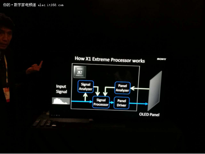 索尼4K图像处理芯片的工作流程是非常复杂的,信号源输入后会同步进入信号分析器和信号处理器,分析器会对画面基于对象进行侦测和分析,把结果再输出给信号处理器,以对原来的信号进行部分的修正和优化。信号处理器把信号输送到面板驱动器后,面板的回馈也会被一并送回处理器,经过优化后再次送达驱动器显示。