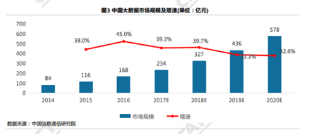在国内,互联网、电信、金融等重点行业领域开始实际部署大数据平台并付诸实践,带动软件、硬件和服务市场快速发展。中国信息通信研究院发布的《中国大数据发展调查报告(2017)》(以下简称“报告”)数据显示, 2016年中国大数据核心产业的市场规模约为168亿元,较2015年增速达45%,随着国家政策激励以及大数据应用模式的逐步成熟,未来几年中国大数据市场仍将保持快速增长,预计到2020年中国大数据市场规模将达到578亿元。