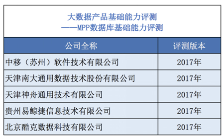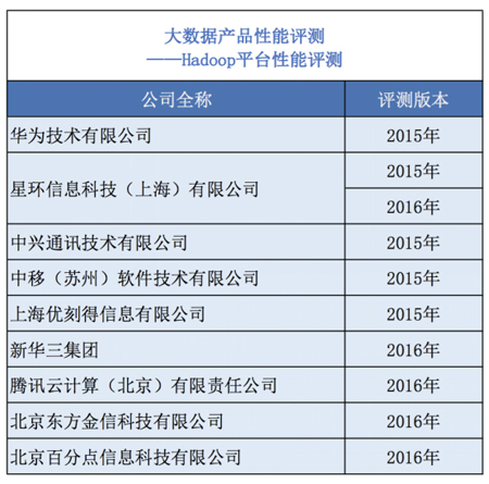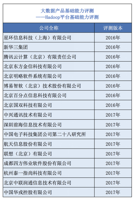 通过大数据产品能力评测的产品名单(截至2017年8月)