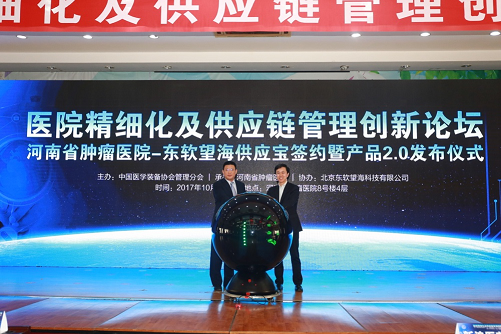 随后,东软望海公司最新的供应宝产品2.0隆重发布,河南省肿瘤医院张建功院长和东软望海公司陈冬坤副总裁共同启动仪式,宣告供应宝2.0正式发布。