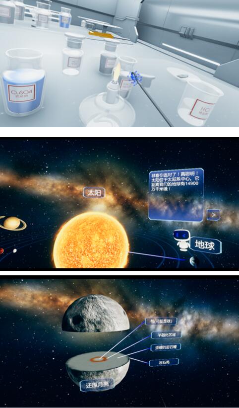 而百度VR在此次展会中也展出了全新的产品——百度VR课堂。百度VR课堂主要提供一站式VR教育解决方案,其中包括部署安装、账号管理、课程升级等服务。目前的课程内容已经涉及自然科学类、艺术创造、天文宇宙等三大类别,而其中还分别设置了如VR生物科学、VR自然地理、VR涂鸦、VR 3D创作、仿真实验、仿真培训等多种子类别。