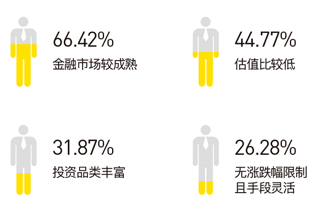 有四分之一的投资者将投资港股作为其主要的海外资产配置手段。投资者表示选择港股的主要原因是香港金融市场比较成熟。