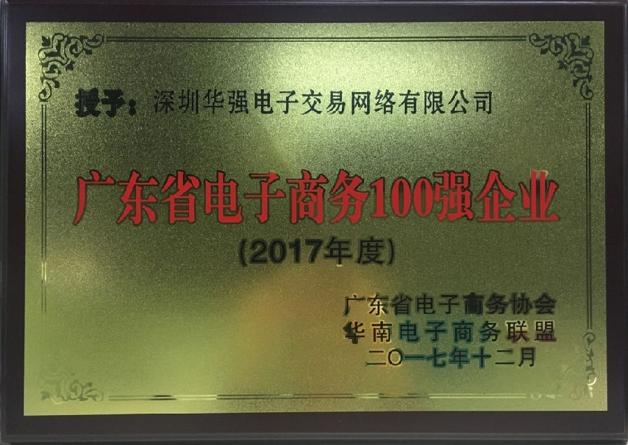 近日,广东省电子商务协会对外公布“2017广东省电子商务企业100强”名单,深圳华强电子交易网络有限公司再次登上榜单,相较2016年的百强排位,2017年上升了3位。同时,深圳华强电子交易网络有限公司是继2015年度、2016年度连续3年获此殊荣。同期入选的企业有华为技术有限公司、唯品会(中国)有限公司、广州晶东贸易有限公司、顺丰速运(集团)有限公司等。