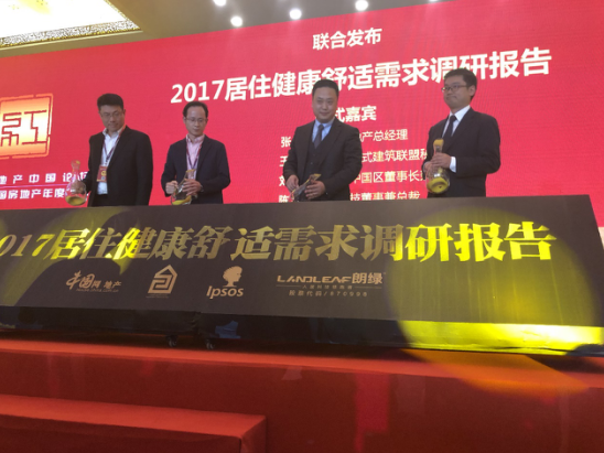 2018年1月18日,第九届地产中国论坛暨2017中国房地产年度红榜在北京钓鱼台国宾馆举行,论坛同期发布了《2017居住健康舒适需求调研报告》。该报告由中国网地产、中国被动式建筑联盟、益普索中国、朗绿科技联合发布,通过长期监测民众对于室内环保的认知与需求的趋势变化,重新定义了消费者心目中“理想的健康舒适”生活。