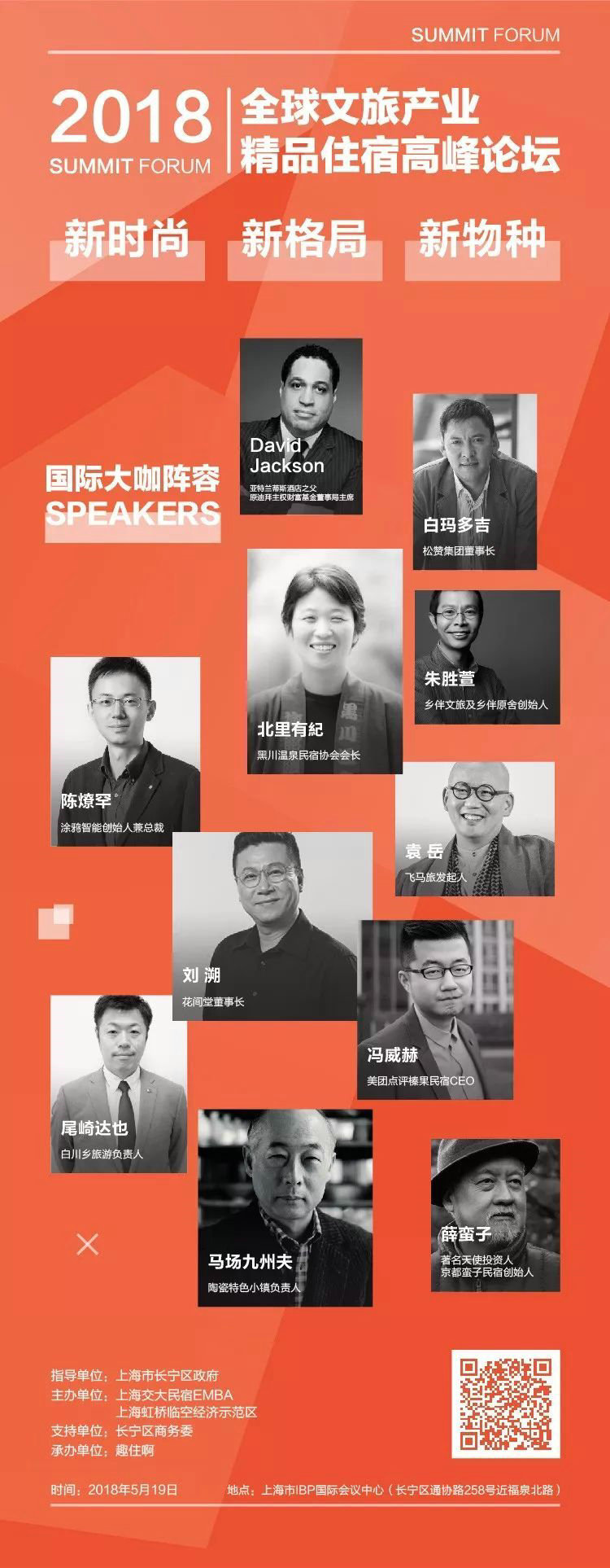 2018全球文旅产业精品住宿高峰论坛围绕“2018新消费时代 | 与头脑王者肩并肩重新定义新民宿!”主题方向,共同探讨新格局下住宿业新物种的打造,同时扩大文旅精品住宿企业在全球市场中的影响力,为精品住宿行业打造国际化视野。