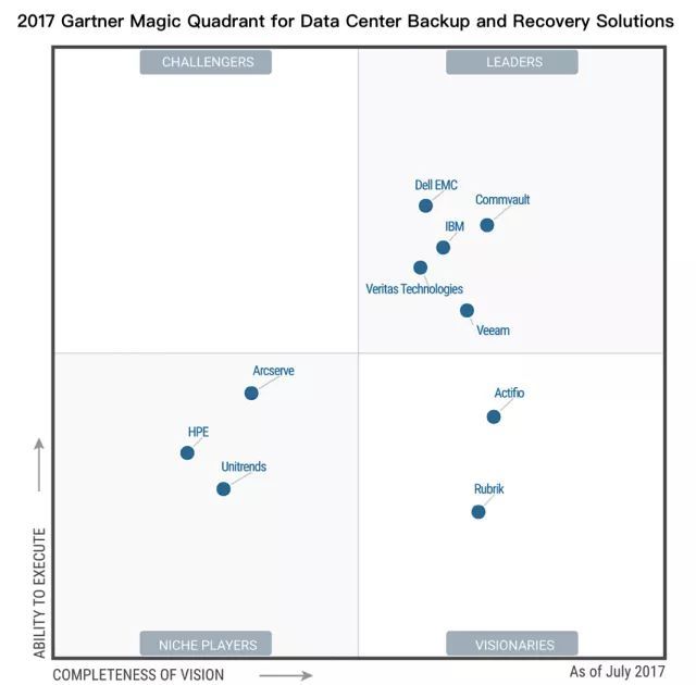 因此,位列2017数据中心备份和恢复解决方案魔力象限的领导者象限,Dell EMC为用户提供的综合数据保护设备,以及独特的云功能,备受业界关注。