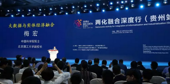 中国科学院院士、北京理工大学副校长梅宏就“大数据与实体经济深度融合”发表主旨演讲。梅宏认为,大数据成为驱动经济社会发展的关键点,是发展数字经济的重要基础,是提升国家治理能力的有效手段,是改善民生服务的有力工具,是实现国家竞争力的重要体现。大数据的融合利用可提升传统行业数字化、智能化水平,提升传统行业效率、自主创新能力,促进数字经济的新业态,推动经济模式向形态更高级的数字经济模式演进。