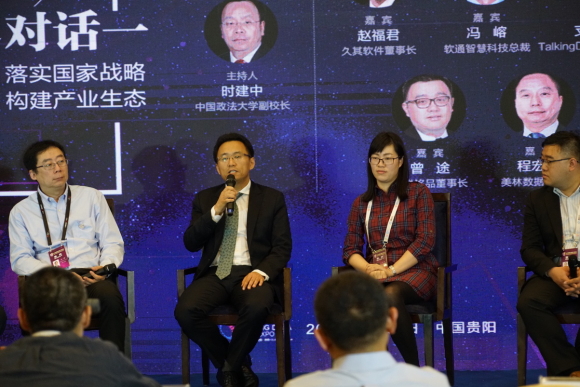 本次数博会上,TalkingData高级副总裁支宝才受邀参与“数聚智创—大数据领军CEO高峰对话”,与中国政法大学副校长时建中等行业专家,共同就“落实国家战略,构建产业生态”的主题进行了探讨与分享。