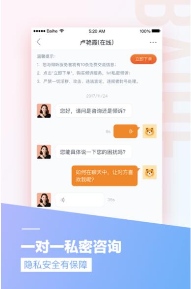 对用户而言,这是一款可以提供匿名倾诉、心理咨询、情感交流的APP。平台聚集了大量职业的情感及心理专家,为用户的恋爱、婚姻、家庭关系、亲子关系、两性问题、职场生存等十大主要门类提供一对一的在线咨询指导服务。