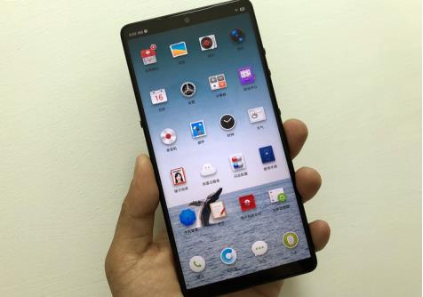 再看坚果R1, 相比前几代产品,甚至是整个手机行业大多数其他全面屏手机,最大的变化是采用了类似“美人尖”一样的异形全面屏,P3广色域,屏幕尺寸为6.17英寸,屏幕纵横比为18.7:9。