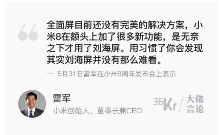 说到这里,已经可以明显看出小米8和坚果R1的外观不同。坚果R1美人尖的独特外观似乎也更容易让人买单,而刘海屏这一设计甚至连雷军自己都“吐槽”。小米8发布后,他表示:“全面屏目前还没有完美的解决方案,小米8在额头上加了很多新功能,是无奈之下才用了刘海屏。其实用习惯了你会发现其实刘海屏并没有那么难看。”