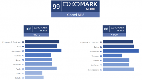 小米8堪称小米相机的代表作品。硬件上,小米8在后置使用和小米MIX 2S相同的双1200万AI变焦双摄,1.4μm超大像素暗光逆光更出色,Dual PD双核对焦又快又准。小米8在DxOMark的测试当中取得了拍照105分的好成绩,位列全球第四,相比小米MIX 2S再次提升。