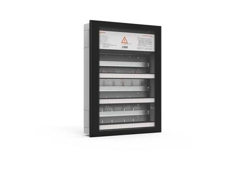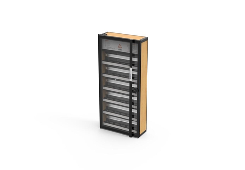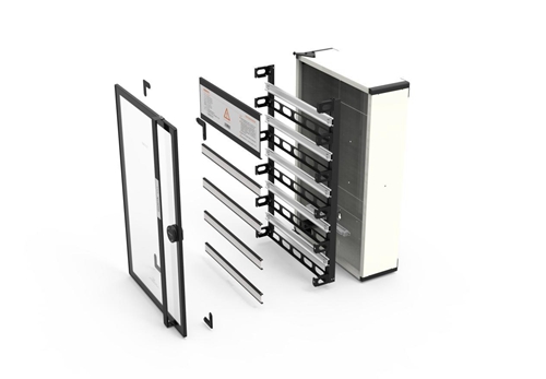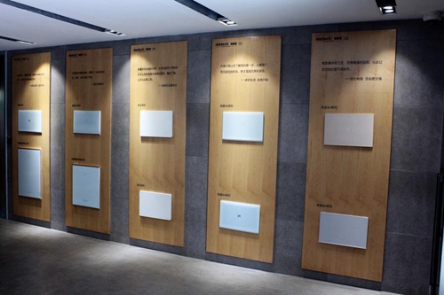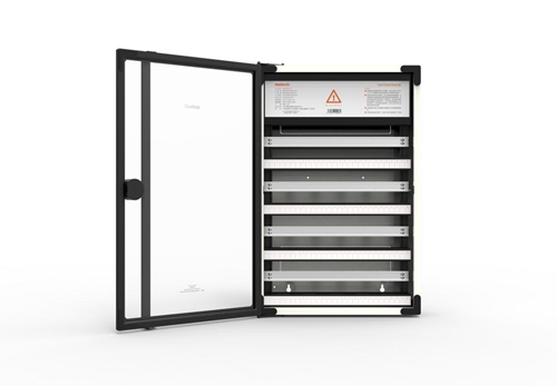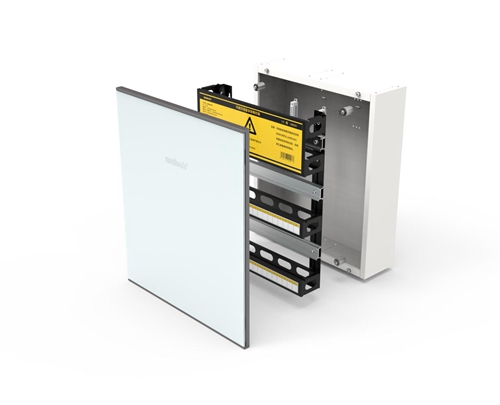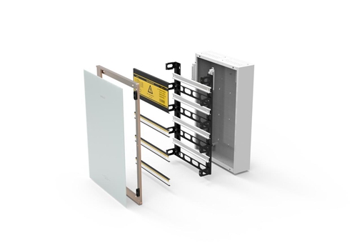 除了铂智暗装系列,铂智系列还设计了一款明装箱,铂智明装系列创新性地解决了智能家居设备安装时现场安装美观度的问题,后进线安装方便、导轨间距可调,实木柜体可以与家具融为一体。