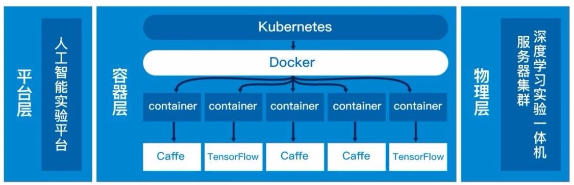AIRack人工智能实验平台硬件采用GPU+CPU混合架构,实现对数据的高性能并行处理,最大可提供每秒176万亿次的单精度计算能力,预装CentOS操作系统,集成TensorFlow、Caffe两套行业主流深度学习框架,整体设计基于Docker容器集群技术,可一键创建随时运行的实验环境。