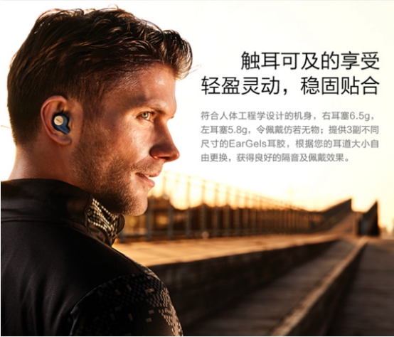 舒适度和稳定性应该是一个运动耳机需要必达的标准。在长时间运动中,就算是项链这样细小的累赘都会让身体感觉不适。Jabra Elite Active 65t臻律动感版触耳可及的享受,符合人体工程学设计的机身,右耳塞6.5g,左耳塞5.8g,令佩戴仿若无物;提供3副不同尺寸的EarGels耳胶,根据您的耳道大小自由更换,获得良好的隔音佩戴效果。运动中根本无须担心掉落,让你仅仅感受到音乐在身体中流淌的律动。