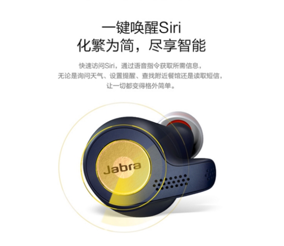对于苹果手机用户来说,还有一点值得一提, Jabra Elite Active 65t臻律动感版耳机能够快速访问Siri,通过语音指令获取所需信息,无论是询问天气、设置提醒、查找附近餐馆,还是读取信息,Jabra Elite Active 65t臻律动感版耳机让一切都变得格外简单。