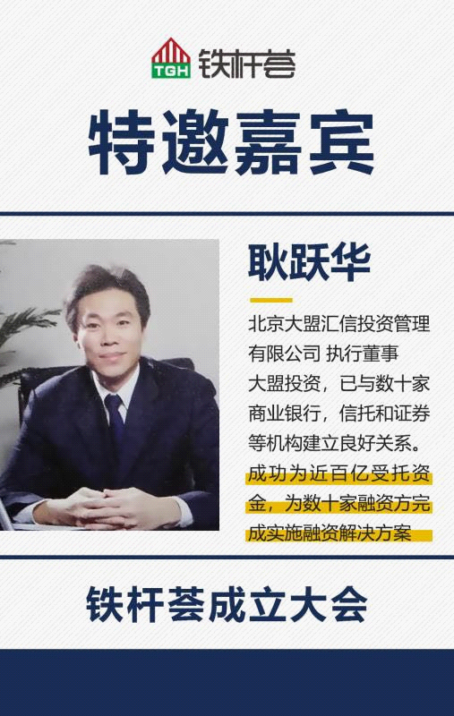 摘要:2018年6月26日,在首都北京泰山饭店将隆重举行铁杆荟成立大会。本次大会由各行业领军企业领导人发起,在铁杆荟家人的共同付出下”铁杆荟”正式成立。