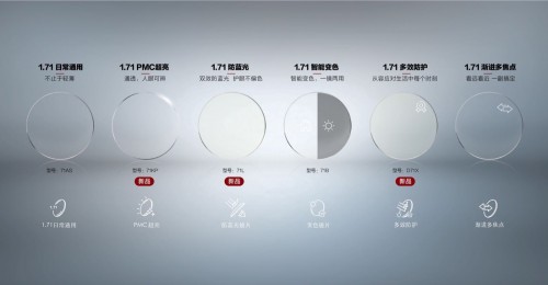 据明月镜片市场总监廖鹏介绍,为了满足消费者不同的视觉需求、提供更轻薄的体验,明月镜片陆续推出1.71多功能系列产品,包括日常通用、PMC超亮、智能变色、防蓝光、多效防护、渐进多焦点等六大系列,能满足用户多种场景的佩戴需求。