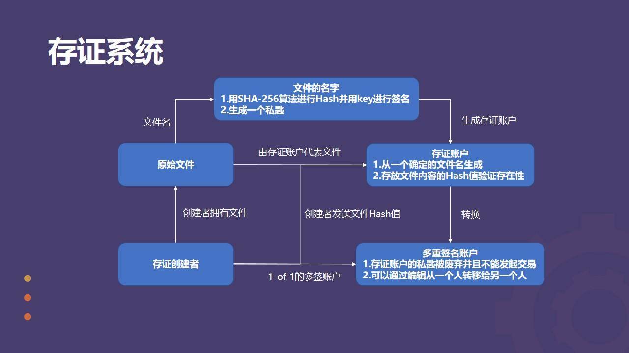 多重签名的NEM的应用,是存证的系统。存证创建者,对文件名用SHA-256算法进行Hash并用Key进行签名,形成私匙,生成账户。多重签名账户,对文件内容做一个Hash,并把Hash值存储到存证账户里去,最终生成多重签名账户。